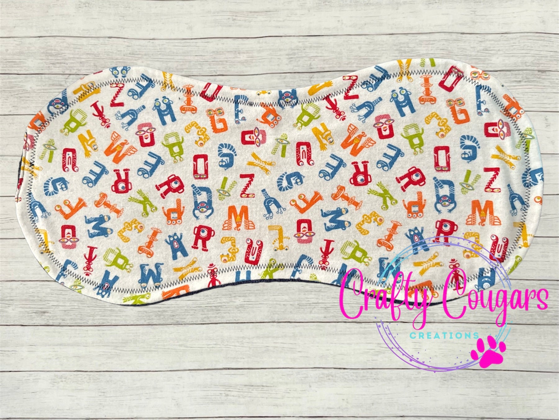 This burp rag features a soft flannel fabric with a super absorbent terry cloth on the back. While the peanut shape makes it easy to use over the shoulder, our burp rags are also great for soaking up spit-ups or laying under the baby during tummy time or diaper changes. This item is for one burp rag that measures approximately 8 inches wide by 20 inches long.