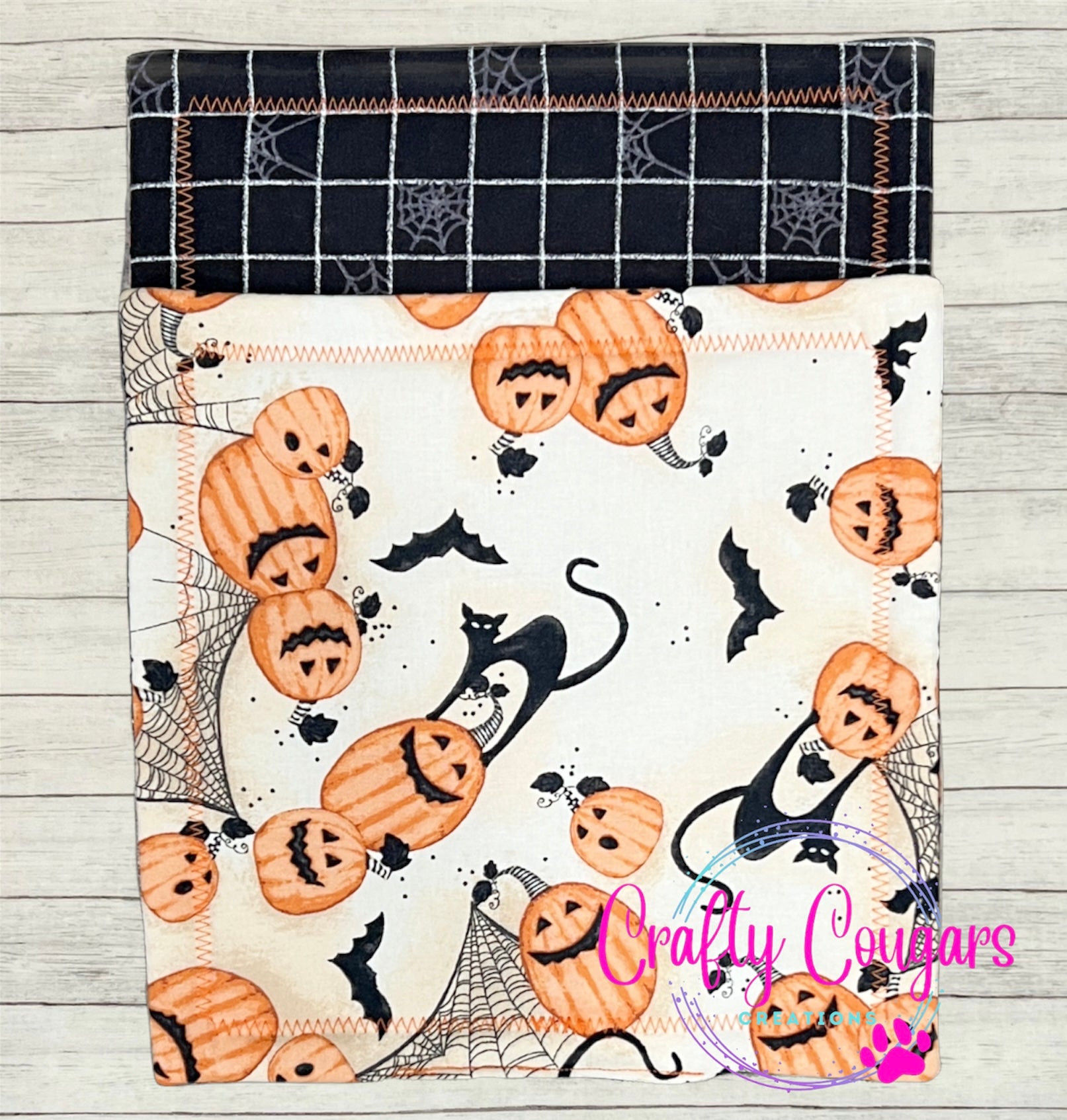 You will find these very useful for protecting your countertops from heat. They are made with coordinating cotton fabrics on the front and back and 2 layers of insulated batting on the inside for heat resistance. These are sold as individual pot holders, not as a set. Each pot holder measures approximately 9 inches by 9 inches.