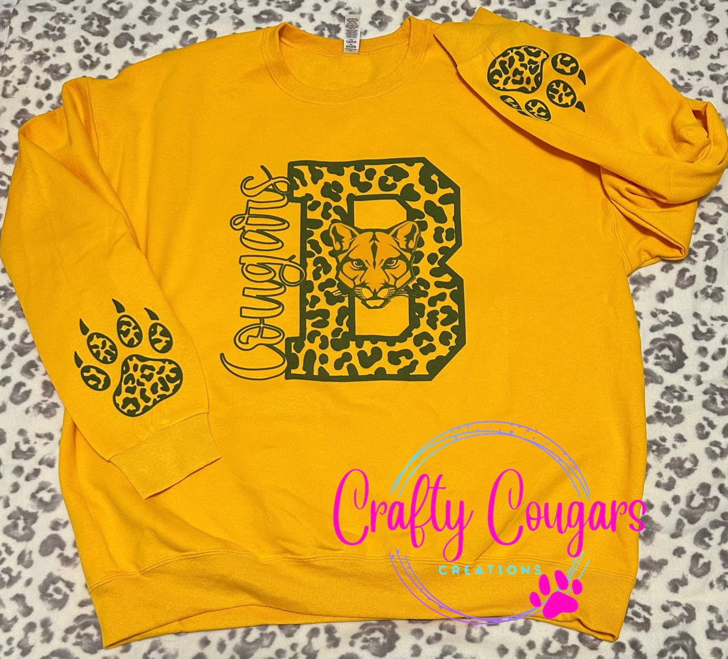 Leopard Blackhawk Cougars with Paw Prints on sleeves- Sweatshirt