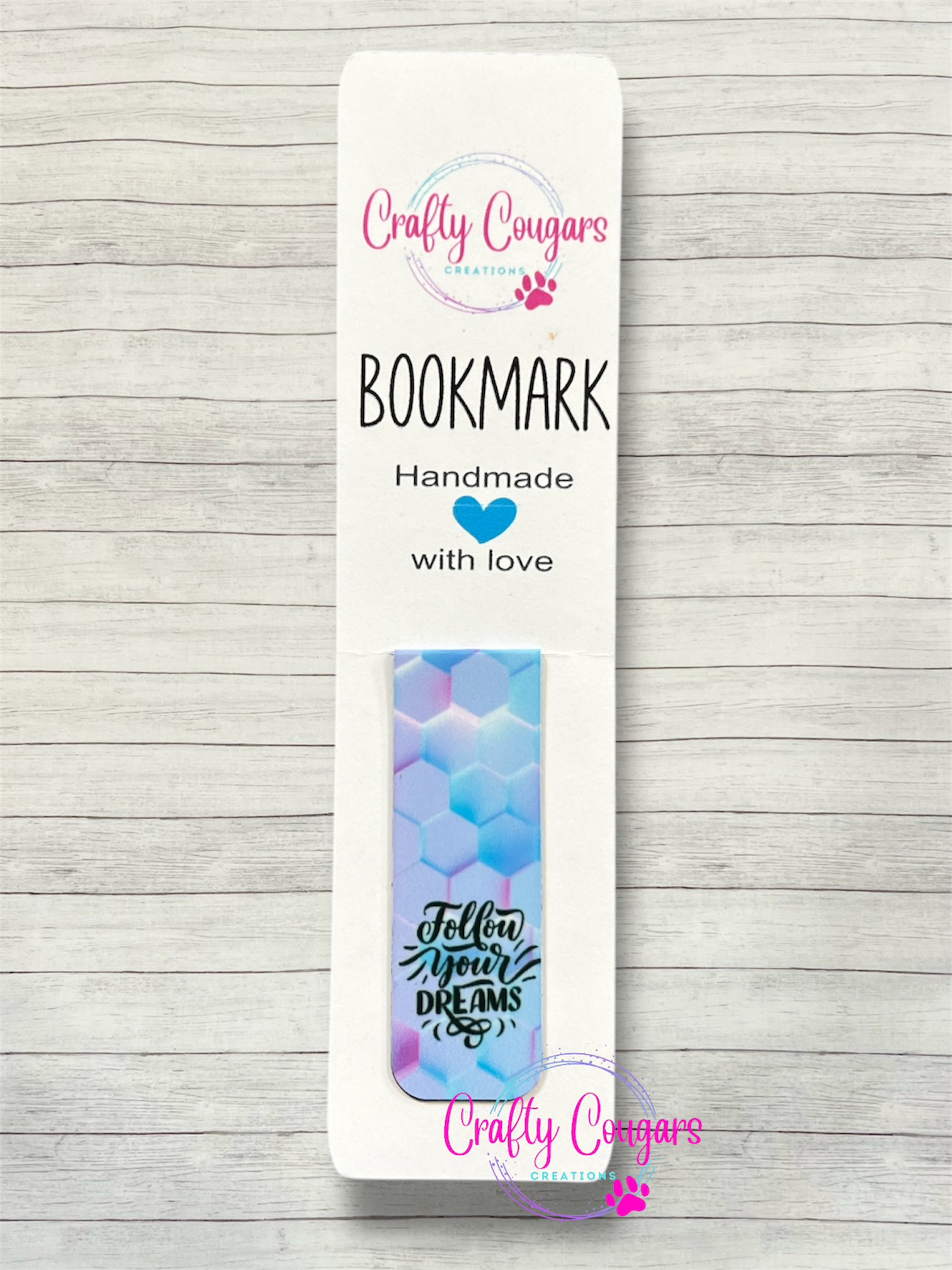 This bookmark is compact, lightweight, and perfect for marking your place in your favorite book. With a strong magnetic closure, you don’t have to worry about the bookmark falling out or damaging any pages. Each bookmark measures 2 1/4” long x 3/4” wide when folded.