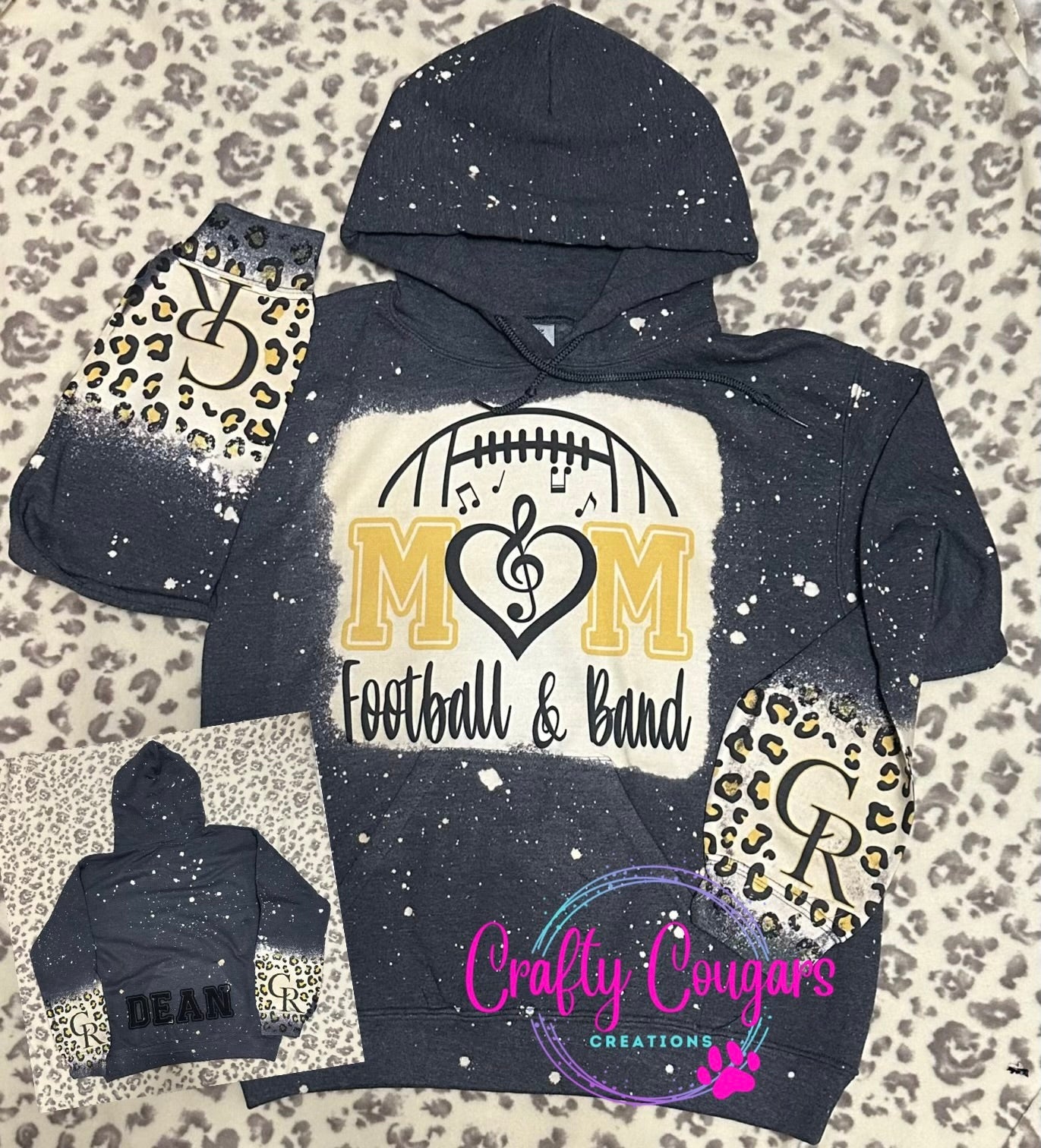 “Football & Band Mom” is a sublimation image that is pressed on a hand-bleached hoodie. Our hoodies are unisex, very soft polyester/cotton blend and run true-to-size. Each hoodie has been pre-washed and pre-shrunk.