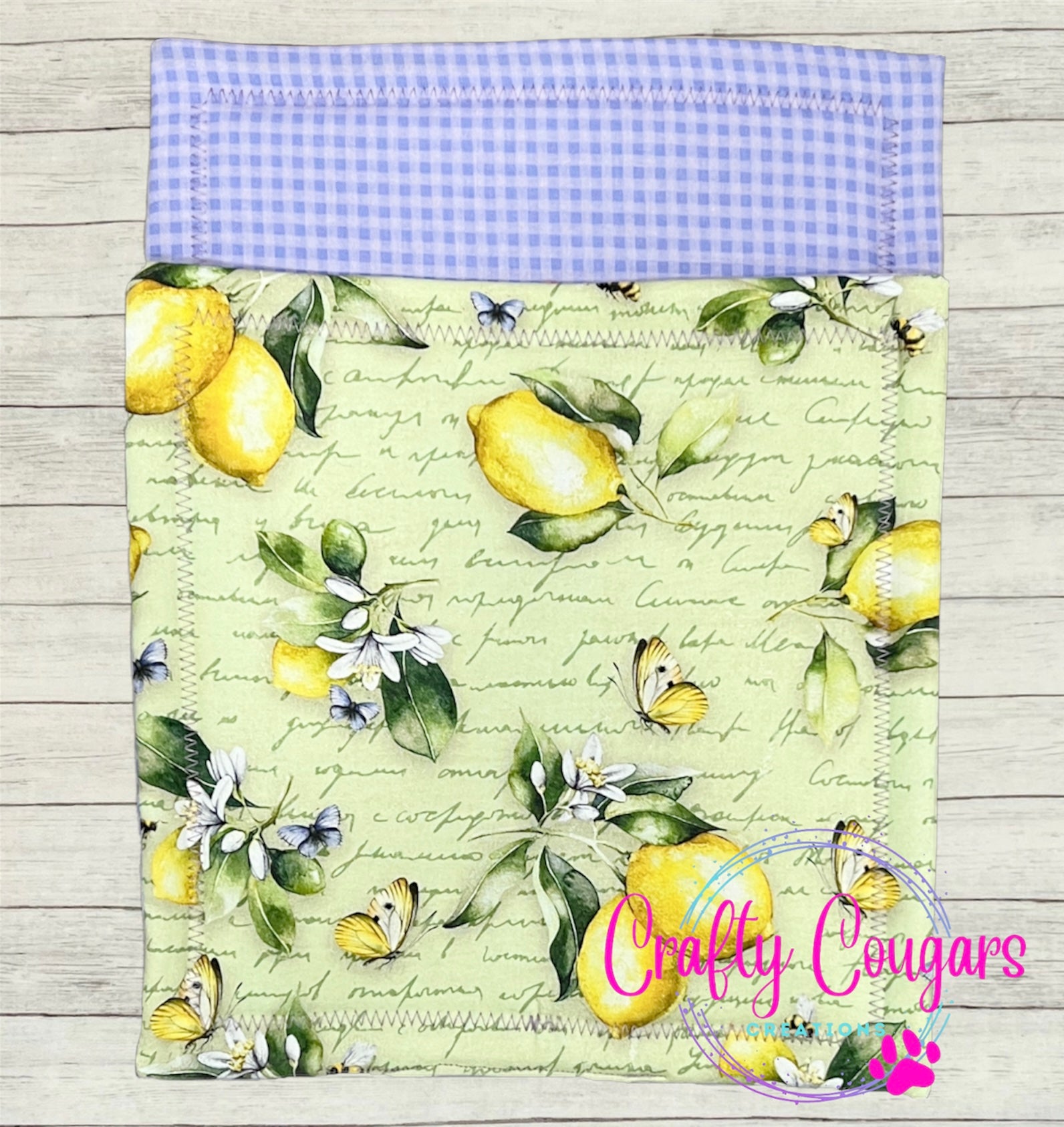 You will find these very useful for protecting your countertops from heat. They are made with coordinating cotton fabrics on the front and back and 2 layers of insulated batting on the inside for heat resistance. These are sold as individual pot holders, not as a set. Each pot holder measures approximately 9 inches by 9 inches.