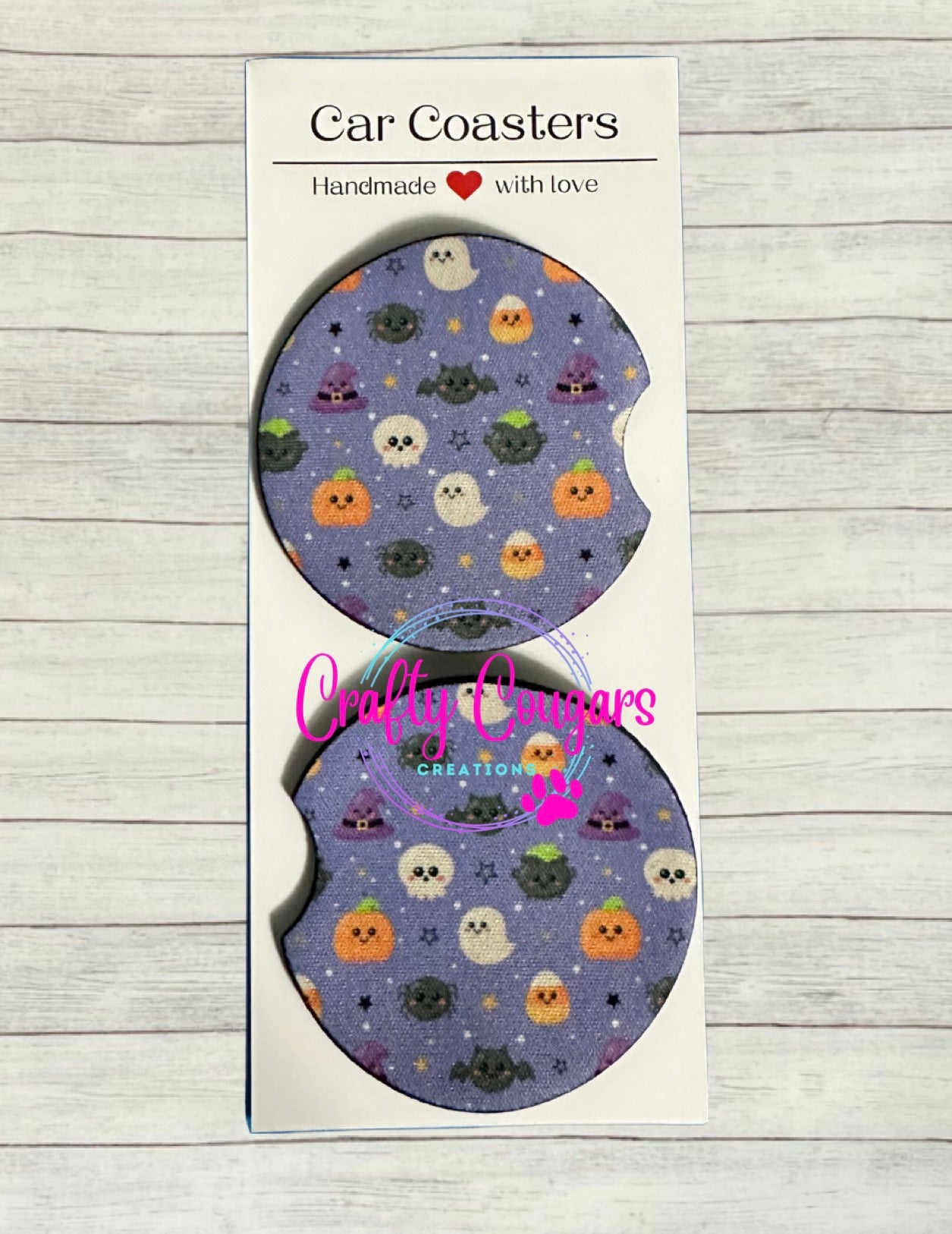 These car coasters come in a set of 2 and are sure to keep your cup holders clean and stylish. They are made of a waterproof neoprene material that is great at soaking up drink sweat, dries quickly and can endure high heat. The image is printed with a special sublimation ink and the ink is heat pressed into the fibers of the coaster, ensuring they will not fade. These measure approximately 2.75 inches in diameter and are designed to fit in most vehicles’ cup holders.