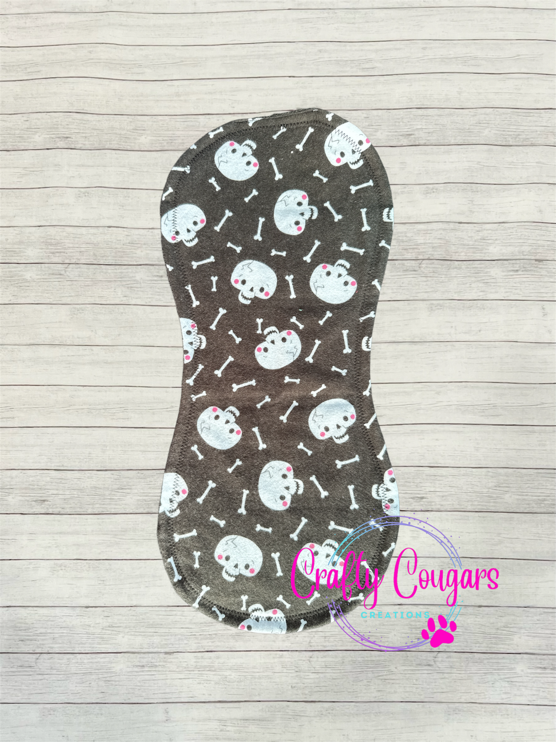 This burp rag features a soft flannel fabric with a super absorbent terry cloth on the back. While the peanut shape makes it easy to use over the shoulder, our burp rags are also great for soaking up spit-ups or laying under the baby during tummy time or diaper changes. This item is for one burp rag that measures approximately 8 inches wide by 20 inches long.